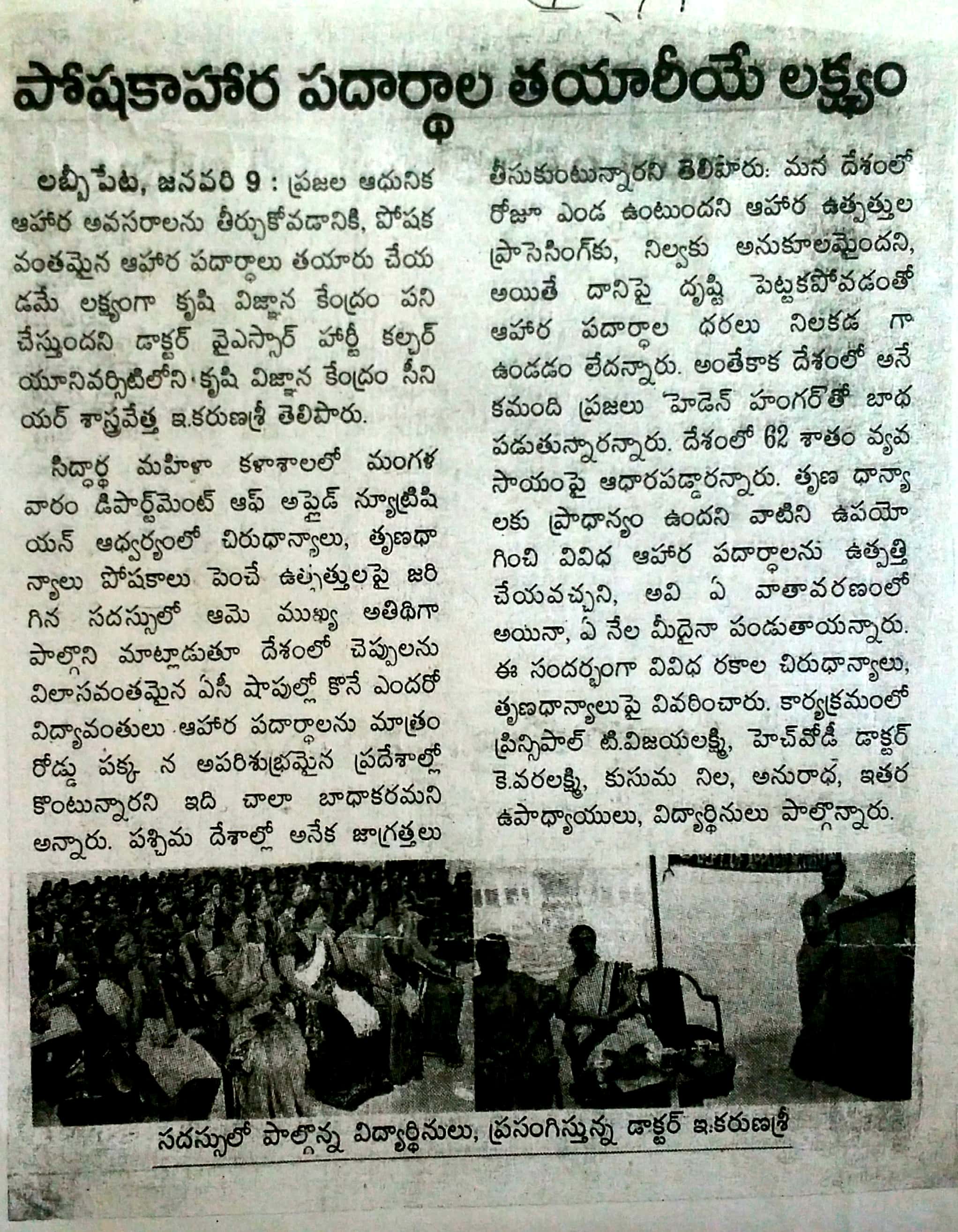 To equip the students with relevant, substantial knowledge and skill in Nutritional Science and in the advancement of Food Science and Technology for the wellbeing of the society.